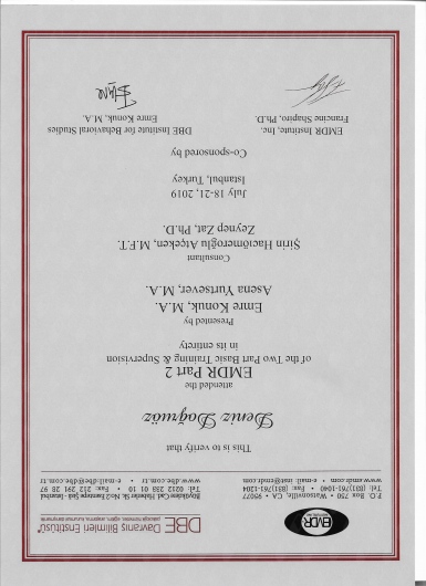 Uzman Klinik Psikolog Deniz Doğruöz'den insanlararası etkileşimle ilgili problemleri aşmak amacıyla işyerinde personel eğitiminde kullanmak üzere transaksiyonel analiz konusunda eğitim ve supervizyon desteği aldım. Kendisi Uzman Psikolog ve bir eğitimci olarak işinde başarılı, yetkin bir kişidir. Benzer konularda danışmanlık almak isteyenlere kesinlikle tavsiye ederim. Emekleri için kendisine de ayrıca buradan teşekkür ediyorum.